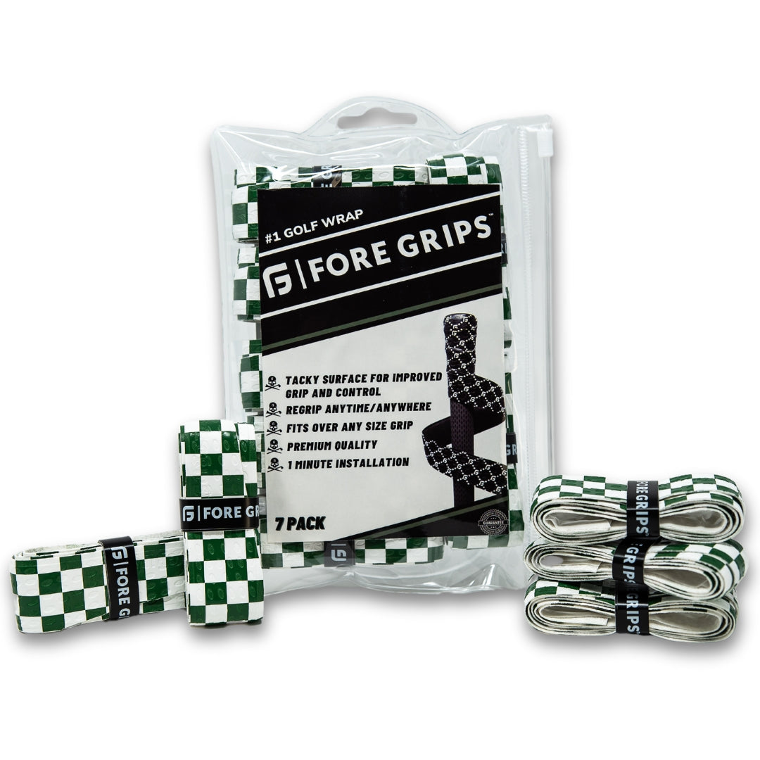 Experience enhanced style and performance on the golf course with Checkered Print, a revolutionary golf club wrap designed to elevate your game. Its sophisticated design features a green and white Checkered Print that's sure to turn heads, while its superior feel and performance will help you play your best.